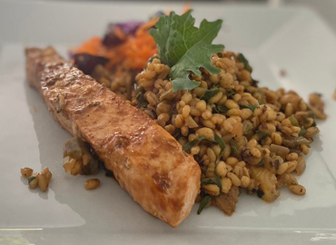 cebada marina con pescado azul y verdes