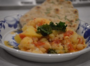 Guiso de batatas y porotos negros con chapati casero Guiso de batatas y porotos negros con chapati casero