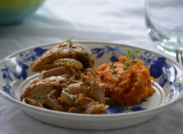 Pollo a la cerveza con puré de zanahorias cremoso