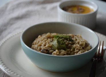 Risotto de champiñones con toque de pesto