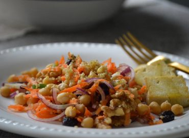Ensalada de garbanzos, quinoa y tofu