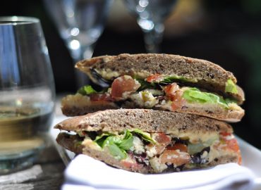 Sandwich integral de hummus y berenjenas