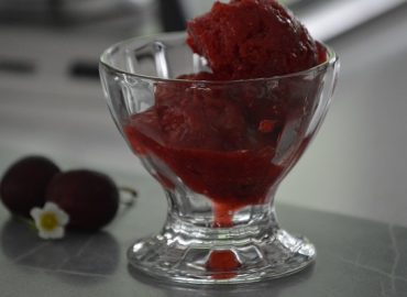 Helado de frutillas y cerezas