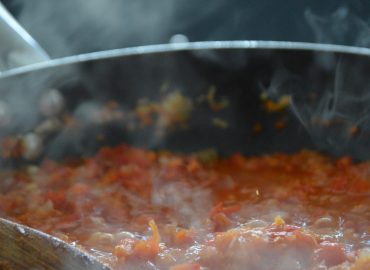 Guiso de batatas y porotos negros con chapati casero Guiso de batatas y porotos negros con chapati casero