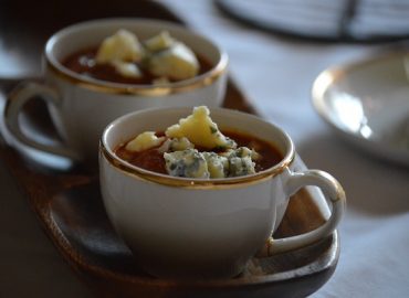 Sopa intensa de remolachas, sus tallos y roquefort Sopa intensa de remolachas, sus tallos y roquefort